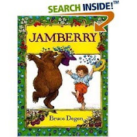 This way they come out one berry at a time and you don't waste any. We use frozen berries to cool off oatmeal or just eat frozen! They're so yummy!If you plan to take your little ones berry picking or are baking something berry delicious be sure to check out this terrific little book!Jamberry by Bruce Degen. A whimsical little story about a boy and his bear friend who travel the land in search of blueberries,
