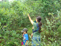 We had a berry yummy adventure yesterday at a local Blueberry field. After a nice Father's Day lunch, we went with a group of friends from church to a little blueberry field and brought home lots of delicious blueberries (in our pails and our bellies!). Ace had a blast running around and discovering the bushes with "a TON of berries" and even Lucky grabbed a few berries to add to the bunch.I love baking with blueberries, but at $4.99 a lb, cannot afford to do it often. Last year we got a bunch off our bushes, but they didn't do so well this year. We've wanted to go berry picking for awhile now so we decided no better time than the present! They were only $2.00 lb so we came home with 14 lbs of berried bliss!This morning we made blueberry pancakes and tomorrow morning we'll be savoring the delicious sweetness of Blueberry Cream Muffins.Here's the recipe:BLUEBERRY CREAM MUFFINSINGREDIENTS* 4 cups all-purpose flour* 1 cup sugar* 6 teaspoons baking powder* 1 teaspoon salt* 2 eggs* 2 cups milk* 1/2 cup butter or margarine, melted* 2 cups fresh blueberries or frozen blueberries** FILLING:* 1 (8 ounce) package cream cheese, softened* 1 egg* 1/3 cup sugar* Dash saltDIRECTIONS1. In a large bowl, combine the flour, sugar, baking powder and salt. In another bowl, beat the eggs, milk and butter; stir into dry ingredients just until moistened. Fold in the blueberries. Spoon about 2 round tablespoonfuls into greased muffin cups.2. In a small mixing bowl, beat cream cheese, egg, sugar and salt; place about 1 tablespoon in the center of each muffin cup (do not spread). Top with remaining batter. Bake at 375 degrees F for 18-20 minutes or until a toothpick inserted in muffin comes out clean. cool for 10 minutes before removing from pans to wire racks.*If using frozen blueberries, do not thaw before adding to batter.For anyone who likes to freeze berries, I've found that if I separate them (unwashed & dry) on cookie sheets and freeze them like that first, it's much easier to put them in bags and use as much as you need rather than having to defrost the whole bag.